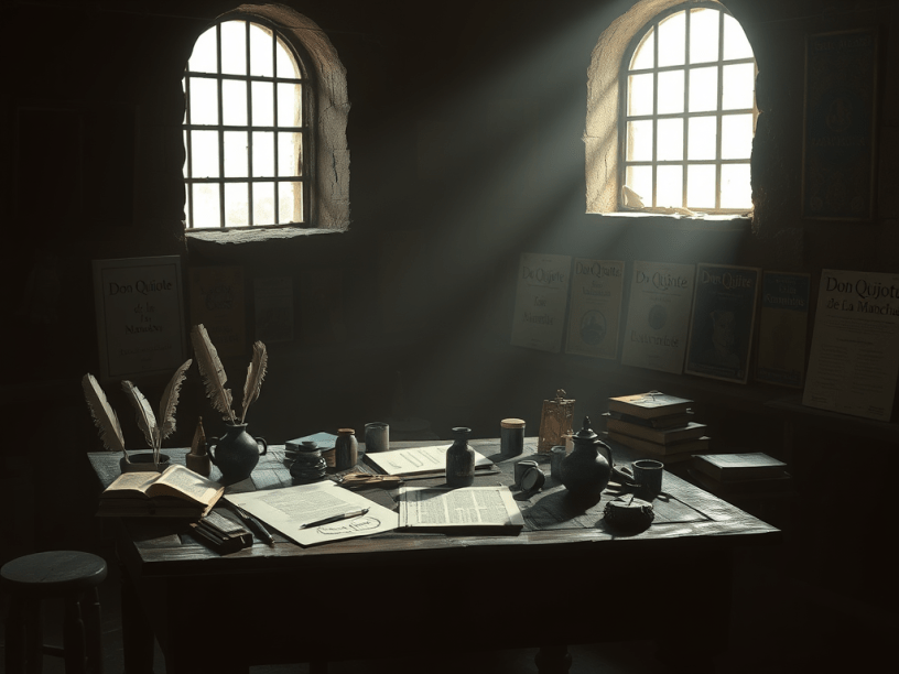 Aunque no escribió toda su obra en prisión, se cree que Miguel de Cervantes comenzó a idear Don Quijote de la Mancha durante su estancia en la cárcel de Sevilla en 1597. Cervantes fue encarcelado por irregularidades en sus cuentas como recaudador de impuestos. Este tiempo en prisión le permitió observar la sociedad de su época y volcar sus experiencias en una novela que se convirtió en un referente de la literatura universal. Don Quijote de la Mancha narra la historia de un hidalgo que, influenciado por los libros de caballería, decide convertirse en un caballero andante. Junto a su fiel escudero Sancho Panza, vive una serie de aventuras cómicas y trágicas que lo llevan a cuestionar la realidad y la locura, convirtiéndose en una profunda reflexión sobre la condición humana y la imaginación.