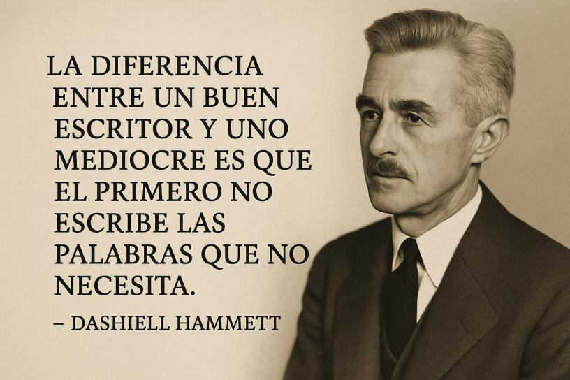 Hammett escribió con una economía feroz. Cada palabra debía justificar su presencia. Rechazaba las descripciones excesivas y apostaba por la acción, el diálogo y el detalle significativo. Su narrador —a menudo en primera persona— observa, actúa y apenas juzga. El resultado es un estilo objetivo, casi clínico, que deja que los hechos y las palabras hablen por sí mismos.