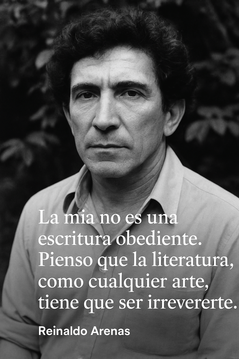 Arenas fue una de las voces más críticas del castrismo desde dentro, y más tarde, desde el exilio en Estados Unidos, donde continuó escribiendo hasta su muerte en 1990. Su obra está atravesada por la pasión, la imaginación barroca, el erotismo, el humor negro y una amarga lucidez. Entre sus títulos más destacados se encuentran El mundo alucinante (1969), una delirante recreación de la vida del fraile franciscano fray Servando Teresa de Mier, y la pentalogía Pentagonía, considerada una de las empresas literarias más ambiciosas de la literatura latinoamericana contemporánea.