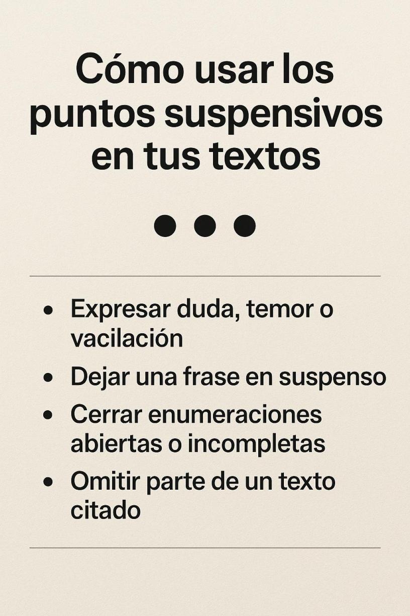 - Empléalos en momentos clave para crear tensión o dejar al lector pensando.