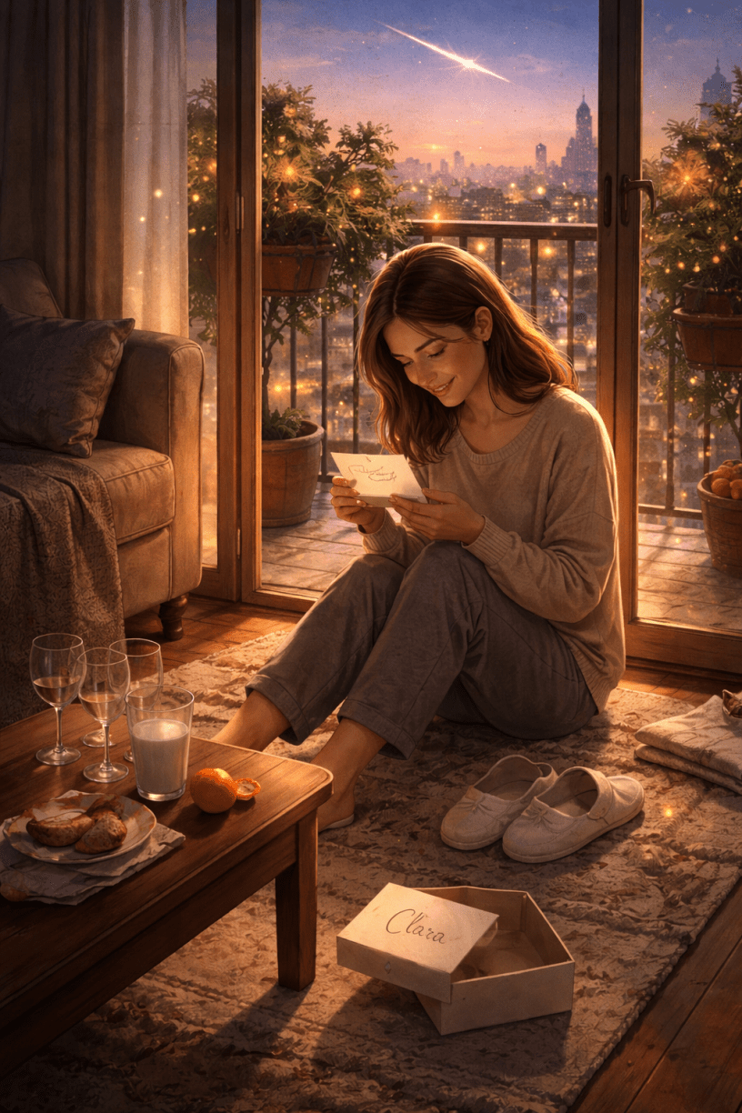 La ciudad parecía contener la respiración. En la noche de Reyes, incluso los semáforos cambiaban de color con más cuidado, como si no quisieran estropear nada. Clara colocó las zapatillas junto al balcón con un gesto automático, casi ceremonial. Hacía años que no lo hacía para sí misma, pero aquella noche no pudo evitarlo.