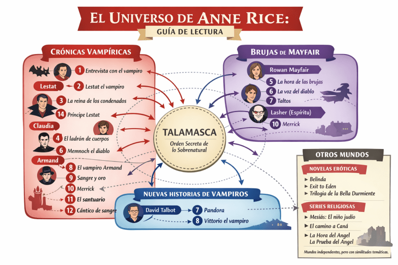 En estas novelas, Rice profundiza en la magia, la herencia familiar y los vínculos con la Talamasca, conectando directamente con la saga vampírica.